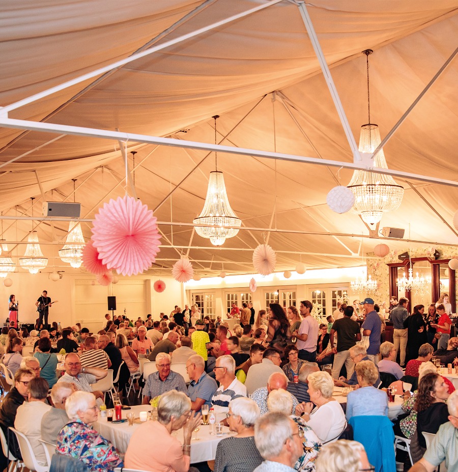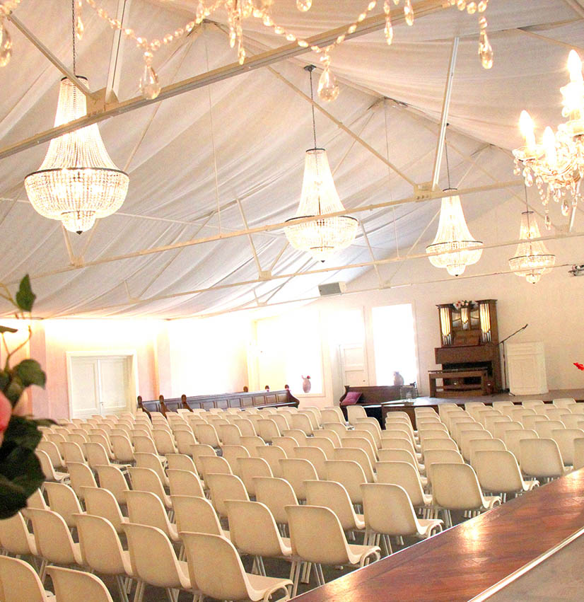 Met enige trots presenteren wij u ”De Feesterij”. In deze sfeervolle zaal is genoeg ruimte om in het vakantieseizoen allerlei activiteiten te organiseren en daar maken we met veel plezier gebruik van. Van een Bingo tot een showavond! Ook de evangelisatie diensten op zondag worden in ”De Feesterij” georganiseerd.